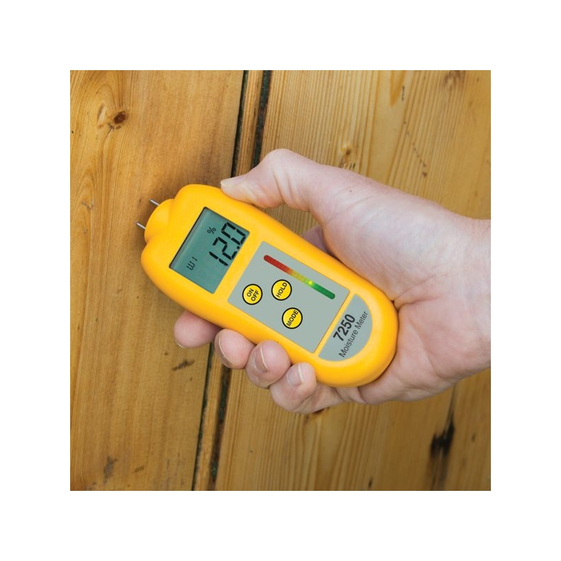 The 7250 is a compact, general purpose moisture meter designed specifically for building professionals and tradesmen to check the moisture content in a variety of construction materials.