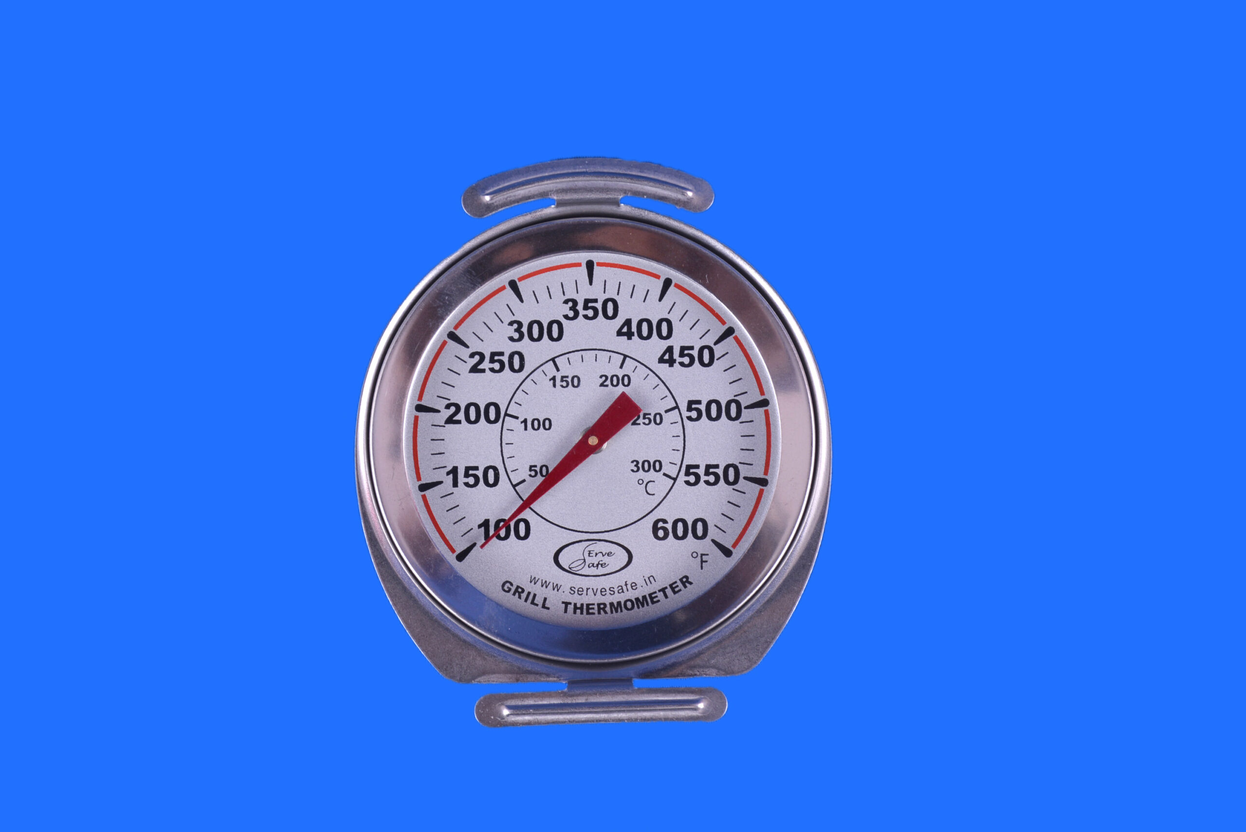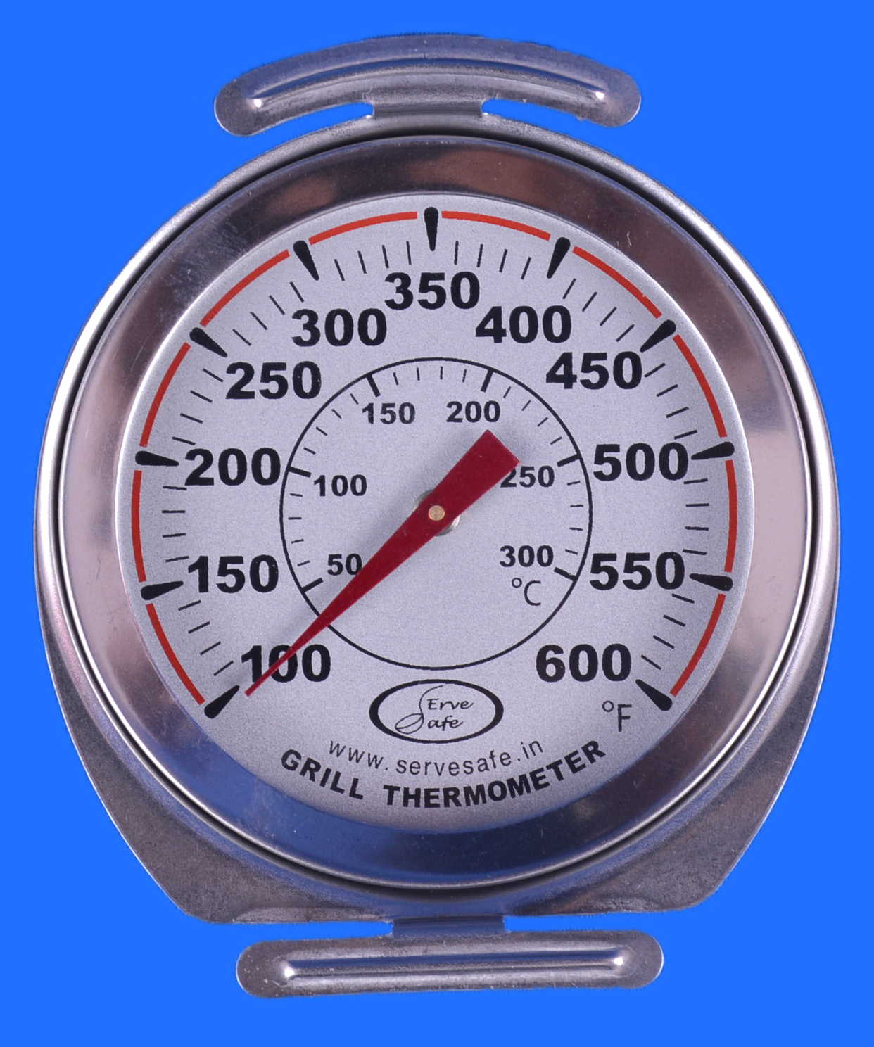 This thermometer boasts of its stainless steel construction and Measures Temperature from 50°C ~ 300°C of 100°F ~ 600°F with a resolution 10° The Grill thermometer Stainless steel construction Withstands the heat and grime of the grill